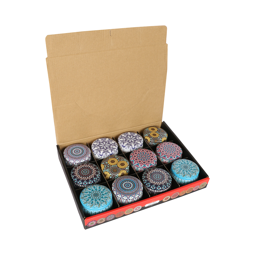 SKU: Round Tin Mandala Pattern Candles Categories: